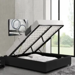 Type de produit : Lit avec coffre de rangement. Matière : Simili (PU). Largeur : 146 cm. Profondeur : 201 cm. Couleur : Noir. Livré avec sommier à lattes, sans matelas. Craquez pour notre le lit Eveil noir avec coffre de rangement. Son système de coffre de rangement vous permettra d’optimiser la place dans votre chambre à coucher. Nous vous proposons différentes tailles pour ce modèle de lit coffre à rangement et le sommmier est livré avec. Craquez pour ce rapport qualité prix le meilleur du web !