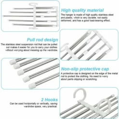 Chaque barre de ce cintre est rĂ©tractable, ce qui facilite le rangement ou le retrait du pantalon. Ne vous inquiĂ©tez pas de gĂącher le placard lorsque vous rĂ©cupĂ©rez vos vĂȘtements.