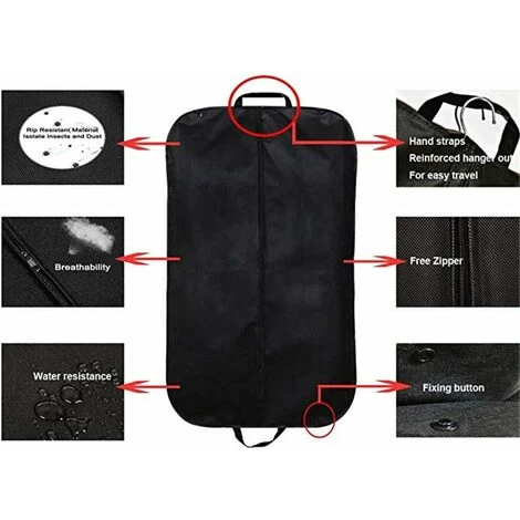 MATÉRIAU DE HAUTE QUALITÉ DURABLE: Ce superbe sac à vêtements noir pour le voyage est durable et convient au port. Il adopte un matériau résistant à la déchirure, imperméable, doux et respirant pour une utilisation durable et promet de protéger vos vêtements à tout moment.