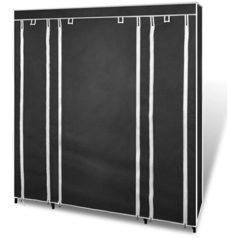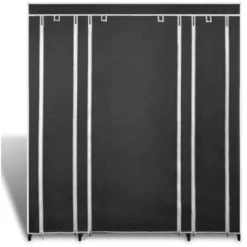 Cette armoire pliable en tubes métalliques a une couverture en textile non-tissé.