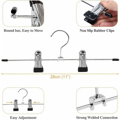 Cintres De Pantalon En Métal,Cintre Pince,Pantalon Cintres,Porte-Pantalon Avec Clips Chromé Réglables,Cintres En Métal,Cintres Porte Jupes Anti-Rides ,cintres Gain De Place,Paquet De 20