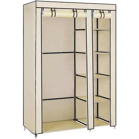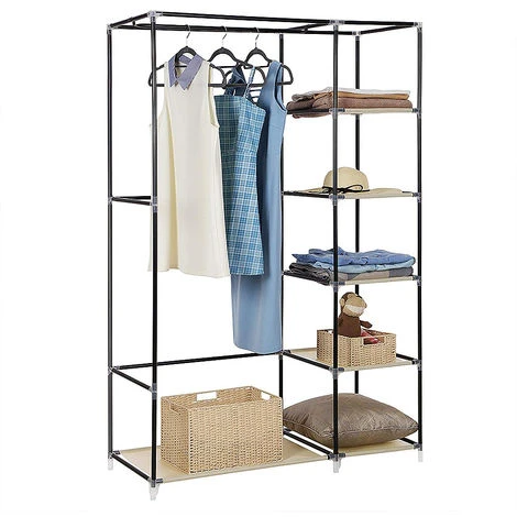 Parfait pour sa mise en œuvre à des fins de bricolage et son gain de place. Léger mais stable. Espace de rangement idéal pour les halls, escaliers, chambres, chambres d’enfants ou caves, greniers et débarras. Il y a 2 tringles à vêtements, vous pouvez accrocher des vêtements, des ceintures et des cravates