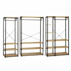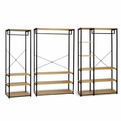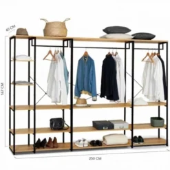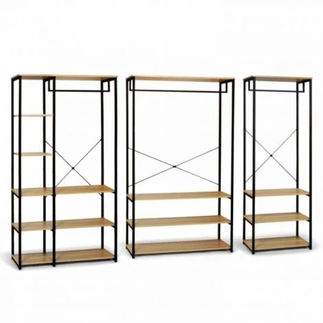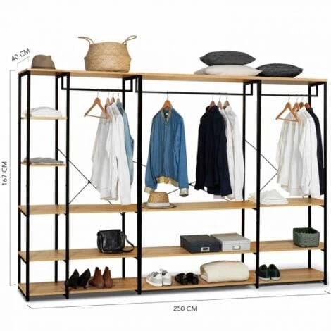 Le dressing grande capacité DETROIT est composé de trois modules à assembler selon vos envies. Vous pouvez créer une large penderie et ainsi organiser le rangement de vos vêtements. Que vous ayez une organisation par couleur ou par typologie de vêtements, toutes les combinaisons sont réalisables. Vous disposez de trois penderies, deux idéales pour entreposer vos chemises et pantalons de L.60 cm et de L.90 cm, tout en profitant des 4 étagères de rangement pour stocker vos gros pulls et vos chaussures.Pour un mix optimisé, le troisième dressing dispose d’un colonne de 6 étagères pour tout votre linge qui se plie plutôt que se pend. Vous pouvez choisir d’aligner les 3 dressings côte-côte ou opter pour une construction en angle, tout est réalisable.Rangez et triez vos affaires sur ce dressing de 250cm de longueur pour une meilleure organisation. Utilisez les tablettes sur le dessus des dressings pour entreposer vos couettes ou valises. Profitez dès à présent de ce dressing stable et robuste, modulable selon vos envies et vos besoins. N’hésitez-plus et foncez pour organiser votre espace penderie selon votre goût !Dimensions du dressing modulable DETROIT XXLDimensions hors tout : Longueur 250 cm x largeur 40 cm x Hauteur 167 cmDimensions du premier module : L. 90 x l.40 x H. 167 cmDimensions du deuxième module : L. 60 x l.40 x H.167 cmDimensions du troisième module : L.100 x l.40 x H.167 cmEtagères en particules de bois 1,5 cm d’épaisseurDistance entre les étagères : 33 cm / étagère du bas : 23 cmStructure en métal noir – tube de 2 x 2 cmÀ monter soi-mêmeLe dressing modulable DETROIT est disponible en différents modèles : – Dressing modulable double penderie étagère DETROIT design industriel- Dressing modulable DETROIT XXL design industrielRetrouvez toute notre sélection de dressings ainsi que notre collection industrielle sur notre boutique en ligne ! – HORS CORSE -article non livrable en Corse