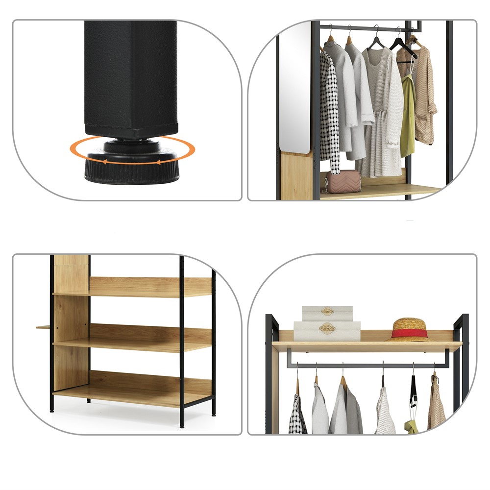 - Convient à différentes chambres : cette armoire peut être utilisée pour créer différents intérieurs tels que moderne, industriel et scandinave. N’hésitez pas à ajouter des décorations à suspendre, comme enrouler votre ruban préféré autour du cadre en métal ou suspendre des breloques. Ajoutez du style et de la personnalité à votre pièce.