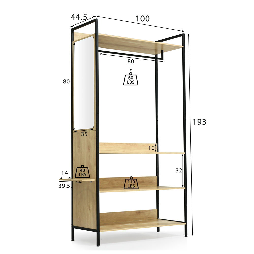- Parfait pour les petits espaces : l’armoire de 100 x 45 x 193 cm est parfaite pour les petits espaces, et la conception ouverte avec miroir de courtoisie latéral rend votre vie plus organisée et plus pratique.