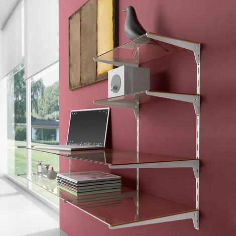 Elles sont conçues pour être utilisées avec les supports à fente unique pour étagères au pas de 50 mm pour l’installation d’étagères en bois ou en verre.