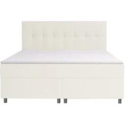 Ensemble Boxspring complet SIERO de DREAMEA tête de lit + sommiers ressorts Nosag + matelas ressorts Bonnell + surmatelas mousse – tissu – soutien très ferme