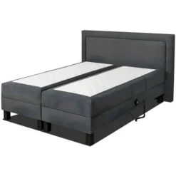 Ensemble literie déco complet PLUMIA de PALACIO tête de lit + sommiers électriques + matelas + surmatelas – 160 x 200 cm – Tissu gris anthracite ou gris clair