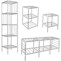 Facile à assembler, sans outillage: il suffit de joindre les barres d’acier au moyen de raccords en plastique technique – inodore et résistant à la chaleur. Vous aurez une nouvelle garde-robe en un rien de temps!