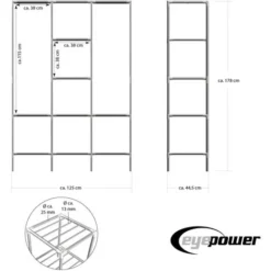 – Taille globale env. 178 x 128 x 44,5 cm, Poids env. 7 kg, Couleur: argent