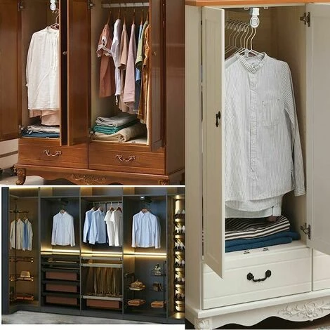 Économisez de l’espace dans le placard: il s’agit d’une tringle à vêtements pour un placard multifonctionnel, qui économise de l’espace de rangement et peut stocker plus de vêtements en même temps. Non seulement peut accrocher des vêtements, mais aussi