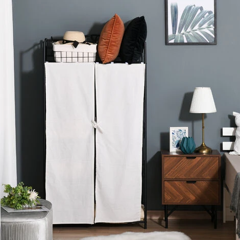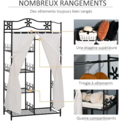 – Armoire penderie style cosy en fer forgé ave rideaux blancs idéal pour une entrée