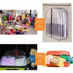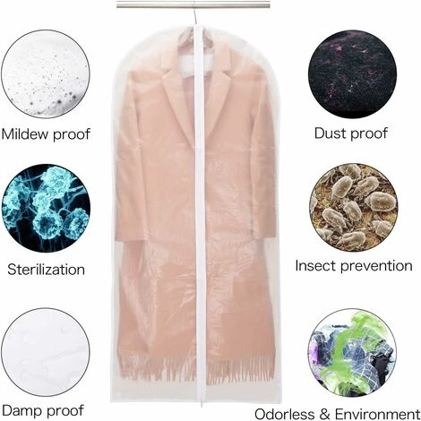 - Matériau PEVA transparent : léger mais durable ; avec une fermeture éclair intégrale et une bordure indéchirable ; les housses de vêtements semi-translucides permettent d’organiser efficacement vos vêtements après le rangement.