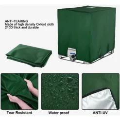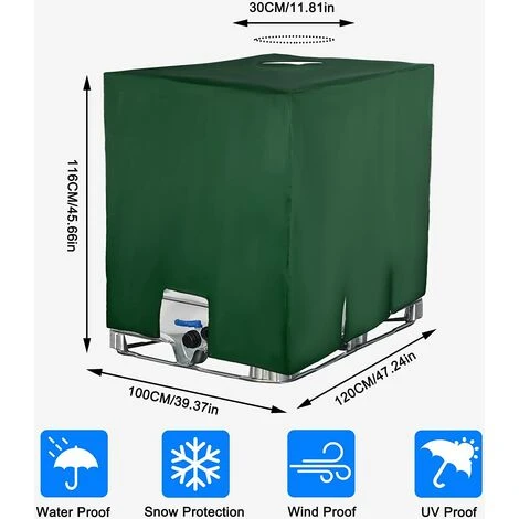 【Convient pour】: ce couvercle UV vert pour couvercle IBC de 1000 litres mesure 116 x 100 x 120 cm et est facile à remplir et à vider. Facile à transporter avec un sac de rangement pour une utilisation répétée et peut être plié pour économiser de l’espace.