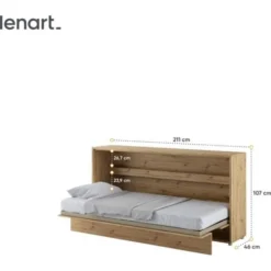 BED CONCEPT est disponible sans matelas, tandis que la structure du lit permet de le combiner avec n’importe quel matelas jusqu’à 20 cm de haut et pesant jusqu’à 18 kg. Le demi-mur proposé ne dispose pas d’étagères supplémentaires et d’éclairage LED visibles sur les photos. Charge maximale: 200 kg. Les éléments nécessaires au montage mural ne sont pas inclus dans le kit.