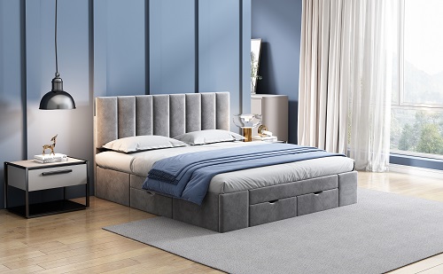 La couleur classique complète tout décor de meuble et dégage un glamour moderne. La tête de lit confortable est idéale pour s’adosser ou lire au lit. Ce lit rembourré a quatre tiroirs et est parfait pour ranger des objets supplémentaires, tandis que les sommiers à lattes intégrés vous garantissent une bonne nuit de sommeil.
