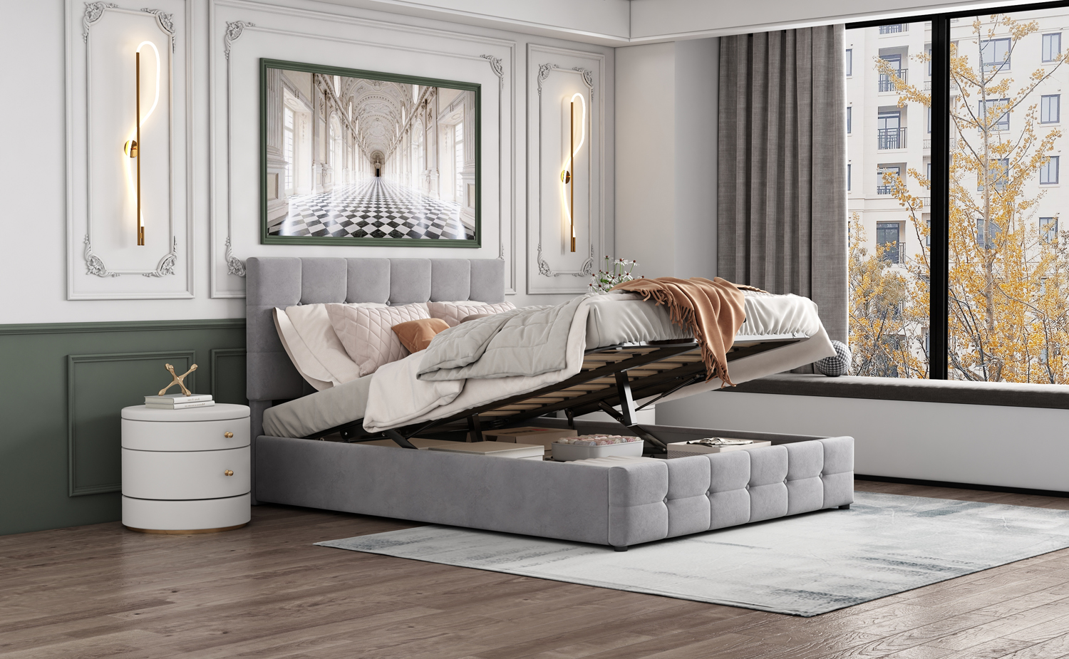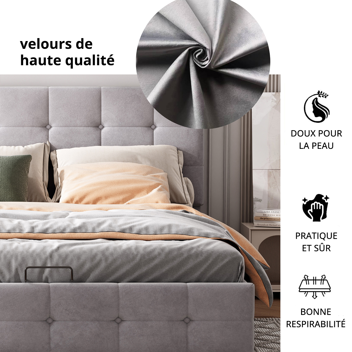 - Si vous recherchez un cadre de lit multifonctionnel et élégant avec espace de rangement, ce lit coffre est parfait pour vous et sera un excellent ajout à votre chambre. Le design élégant contribuera à égayer votre environnement domestique et à créer une sensation de chaleur dans votre chambre.