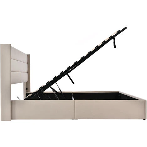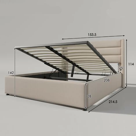 - Tige hydraulique – Grand rangement : la grande boîte de lit sous l’étagère à lattes pliable dispose d’un grand espace de rangement pour les couvertures, les oreillers ou les draps, et l’étagère à lattes se plie facilement avec des vérins de levage. Le tissu Oxford est attaché au fond du lit pour empêcher la poussière de pénétrer.