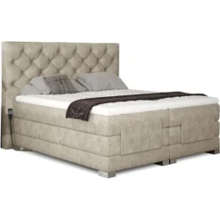 Le lit continental Karmen avec télécommande électrique est une nouvelle option pour tous ceux qui apprécient le confort au plus haut niveau. Le contrôleur vous permet d’ajuster la hauteur des matelas à vos besoins individuels. Le réglage de la hauteur de la tête et des pieds augmente le confort et la praticité de l’ensemble du lit.