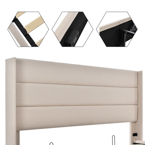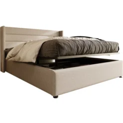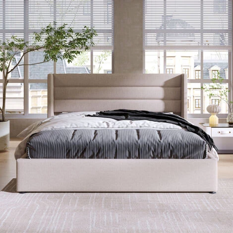 4.Vous cherchez un lit pratique pour économiser de l’espace ? Notre lit rembourré répond à vos besoins ! Notre barre hydraulique permet un accès facile à un large espace de rangement sous le sommier relevable, où vous pourrez ranger vos accessoires ou effets personnels sans stress.