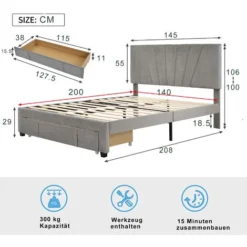 【Style classique】 – Style classique et support de matelas solide, tissu en flanelle doux pour la peau et grand tiroir de rangement, ce lit plateforme rembourré classique est un bon choix pour les enfants, les adolescents et les lits d’invités