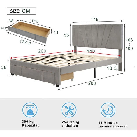 - Le tissu en flanelle doux pour la peau offre une sensation douillette et l’espace de rangement surdimensionné fait de ce cadre de lit rembourré un excellent choix pour ceux qui aiment tirer le meilleur parti de leur espace.