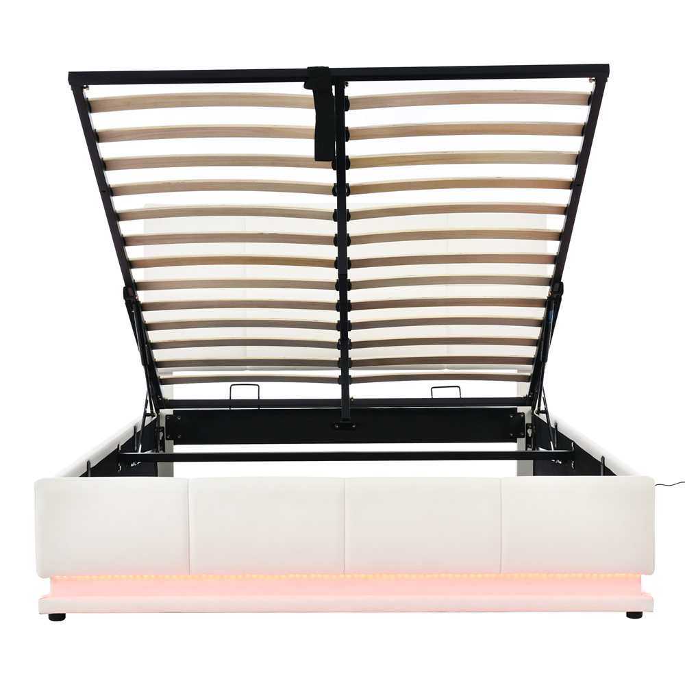- Lit moderne avec LED : recouvert d’un design en cuir élégant, de belles lumières LED autour du lit, actionnées par une télécommande à 24 boutons avec 4 modes de changement automatique et 16 couleurs changeantes de lumière.