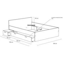Livré démonté sans sommier, prévoir un sommier à cadre.