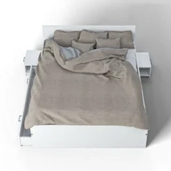 Le lit Twist apporte à la chambre un côté confortable et pratique. Composé d’ 1 grand tiroir, il permet d’optimiser facilement le rangement dans l’espace nuit. Il dispose de deux tables de chevet montées sur roulettes que l’on peut glisser sous le lit en un clin d’œil pour libérer de l’espace dans la pièce ! Grâce à son design sobre et épuré, le lit Twist est un intemporel qui conviendra à tous les interieurs.