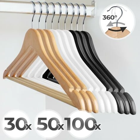 - SANS DÉSORDRE: Cet ensemble de cintres en bois (30/50/100) au design épuré, vous permettra d’organiser votre armoire et votre garde-robe, afin de choisir encore plus rapidement la bonne tenue pour la journée