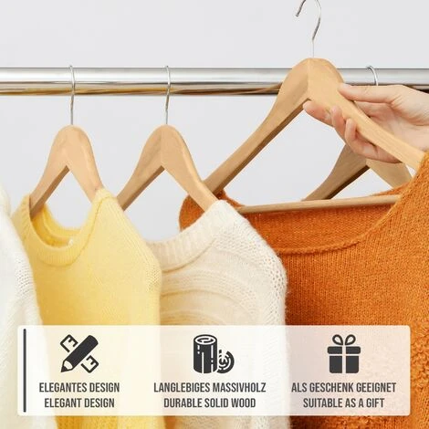 - LISSE: Nos cintres sont fabriqués en bois massif mixte verni clair, ce qui promet une facilité d’utilisation et une durabilité