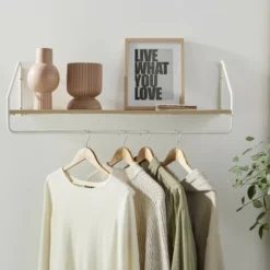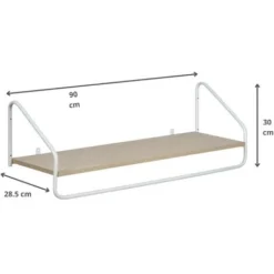 Sobre et solide, la tablette murale a été pensée pour offrir un espace de rangement ouvert supplémentaire vous permettant ainsi d’adapter la disposition de vos affaires. Ce mix matière est idéal pour des pièces chaleureuses comme la chambre ou l’entrée. Ce produit existe aussi en noir ! Cette penderie peut supporter une charge maximale de 10 kg. Vis de fixation murale non fournies.