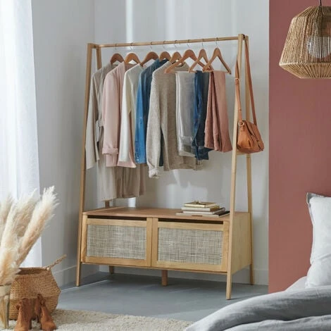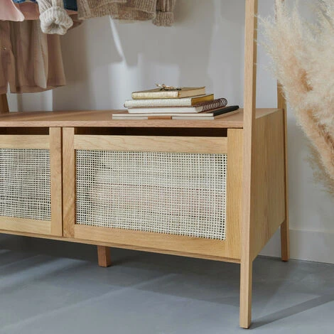 Le portant vĂȘtements en bois et cannage ARKA sera parfait pour apporter une touche dĂ©co Ă une entrĂ©e ou une chambre. Cette penderie de rangement accueillera vĂȘtements, chaussures et accessoires. EquipĂ© d’une Ă©tagĂšre et d’une barre de penderie, le portant ARKA a Ă©tĂ© pensĂ© pour vous faciliter le rangement au quotidien.