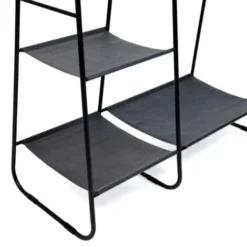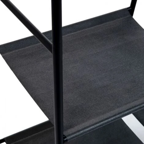 Descriptif du portant Ă vĂȘtements PATSYA la fois tendance et fonctionnel, ce portant Ă vĂȘtements aux coloris noir/mĂ©tal dispose d’une grande barre de penderie qui permettra de placer des cintres jusqu’Ă 63 cm de long. Les deux extrĂ©mitĂ©s du portant permettront de maintenir les vĂȘtements en place. GrĂące Ă sa grande taille de 155 cm, vous pourrez ranger tous types de vĂȘtements qu’ils soient longs ou courts. Vous Ă©viterez ainsi que vos vĂȘtements ne s’abĂźment ou ne se froissent. Vous allez aimer son aspect multifonctions avec ses 5 Ă©tagĂšres en tissu noir 100% polyester, oĂč vous pourrez ranger vos vĂȘtements, paniers, boĂźtes ou vos chaussures sur la partie basse. Placez-y par exemple votre boĂźte Ă cirage, vous serez ainsi toujours impeccable en sortant de chez vous !Le design sobre et Ă©purĂ© du portant Ă vĂȘtements PATSY le rend adaptable : il s’intĂ©grera dans toutes les piĂšces de votre intĂ©rieur. Il sera trĂšs utile dans une buanderie pour ranger vos manteaux et accessoires, mais il deviendra aussi vite indispensable dans une chambre pour ordonner votre garde-robe. Ce portant Ă petit prix est fait pour votre intĂ©rieur, il modernisera votre piĂšce Ă coup sĂ»r !Dimensions du portant Ă vĂȘtementsDimensions globales hors tout : Longueur 110 x largeur 45 x hauteur 155 cmDimensions du portant façon bois : Longueur 63 x hauteur 133 cm Dimensions porte-chaussures tissu : Longueur 60 x largeur 42 cmDimensions des Ă©tagĂšres tissu (du bas vers le haut) : – Longueur 43 x largeur 40 cm- Longueur 35 x largeur 40 cm- Longueur 27 x largeur 40 cm- Longueur 19,5 x largeur 40 cm6 patins antidĂ©rapants fournisCapacitĂ© par Ă©tagĂšre : 3 kgRetrouvez tous nos portants et meubles d’entrĂ©e sur notre boutique en ligne