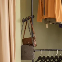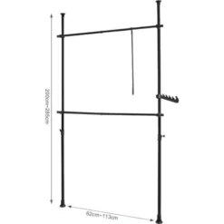 Se monte simplement entre le sol et le plafond, sans percer ! Deux barres porte-vêtements télescopique et extensible, de 77-112cm en largeur, et de 103-278cm en hauteur.La position des barres est réglable. Montage et démontage rapide et facile.