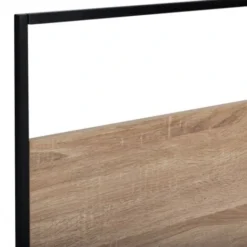 Apportez une note chaleureuse à votre chambre à coucher avec cette tête de lit DETROIT coloris noir et bois au design industriel. La tête de lit se mariera avec tous types de décorations intérieures et apportera une touche tendance et chaleureuse à votre espace nuit. Très simple à installer grâce aux fixations murales fournies, une fois fixée au mur, la tête de lit ne prendra que très peu de place dans votre chambre à coucher. De plus, cette tête de lit est compatible pour les lits de 140 cm. La hauteur de la tête de lit DETROIT vous permettra, une fois installée, de vous adosser confortablement grâce à vos oreillers, pour un moment de relaxation. La tête de lit au design industriel et couleurs tendances bois et noir est l’élément décoration indispensable à adopter dans votre chambre à coucher.Alors n’hésitez plus et optez pour cette tête de lit DETROIT bi-matière !Vous pouvez assortir la tête de lit avec les chevets DETROIT pour une chambre harmonieuse et tendance au design industriel ! Dimensions de la tête de lit DETROIT Dimensions globales : Longueur 145 cm x largeur 120 cm x Hauteur 2 cmMatériaux : Particules de bois (PB) 15 mm – Tubes métal 16 x 16 mmHauteur du pied : 48,4 cmColoris : bois et noirKit de fixations murales fourniÀ monter soi-mêmeD’autres modèles de têtes de lit DETROIT existent avec niches en 145 cm et 165 cm.Retrouvez également nos autres têtes de lit disponibles sur notre boutique en ligne.
