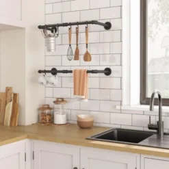 - Multifonctionnel: Ces étagères murales façon tuyaux ne sont pas un simple accessoire de décoration, vous pouvez les utiliser dans l’entrée pour ranger des sacs, dans la salle de bain pour des serviettes et des gants de toilette, dans la chambre pour des vêtements. Tout est rangé facile d’accès pour plus de commodité