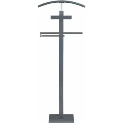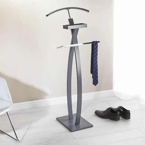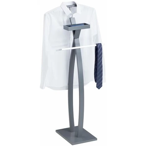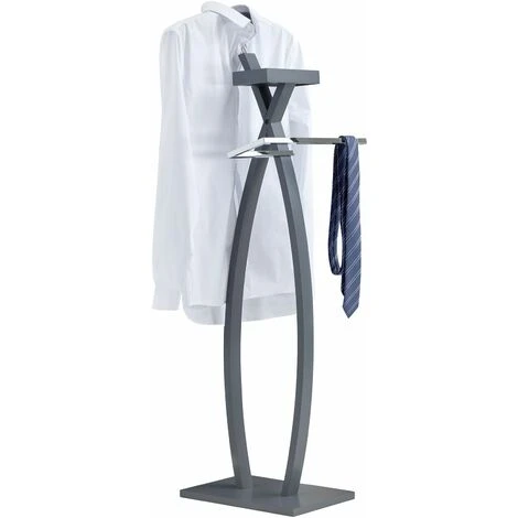 – Le valet est fabriqué en bois lamellé et laqué gris.