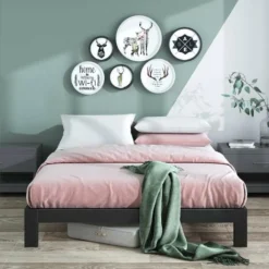 CADRE DE LIT SIMPLE – Avec un style épuré qui conviendra à de nombreux styles décoratifs, ce solide cadre de lit est aussi robuste qu’il en a l’air, grâce à une fabrication en acier durable et à des lattes en bois robustes