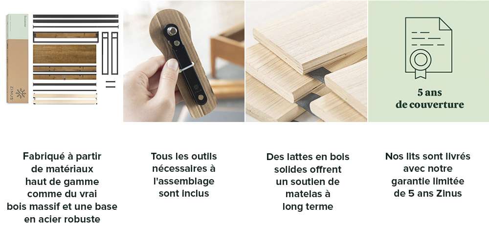 SILENCIEUX – Les lattes en bois durables et bien rapprochées ont été conçues pour minimiser le bruit pendant votre sommeil et pour prolonger la durée de vie de votre matelas